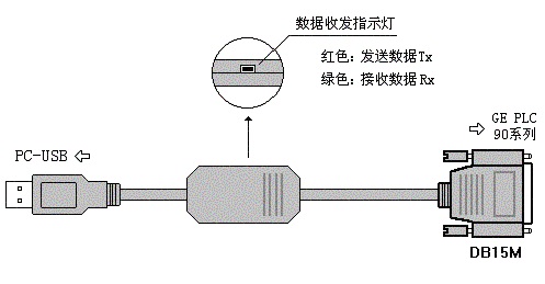 USB接口的GE 90系列PLC編程接口電纜,USB/SNP接口,3米,帶通信指示燈,最大通信距離可達1.5公里。