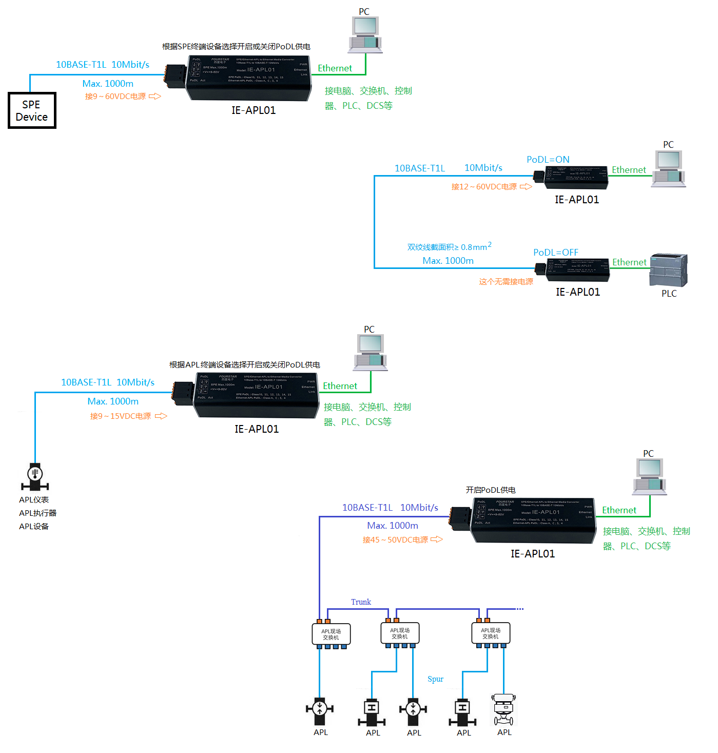 SPE通訊協(xié)議 | IEEE802.3cg-2019,10Base-T1L,數(shù)據(jù)透明傳輸,支持所有以太網(wǎng)上層協(xié)議,如PROFINET、MODBUS TCP/IP、Ethernet/IP、EtherCAT、CC-Link IE、POWERLINK 等。 |
