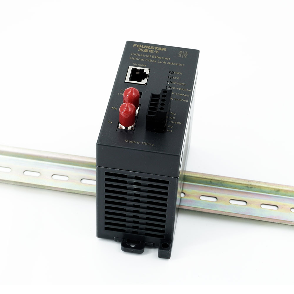 工業(yè)以太網(wǎng)多模光纖鏈路適配器。將以太網(wǎng)電纜傳輸轉(zhuǎn)換成光纖傳輸,符合IEEE802.3u,10/100Base-TX和100Base-FX工業(yè)以太網(wǎng)標(biāo)準(zhǔn),網(wǎng)口速率10/100M自適應(yīng),光口速率100M,電源端口-網(wǎng)口-光纖端口全部隔離,光纖接頭標(biāo)配ST接頭,適用光纖:多模62.5/125um、50/125um,最大傳輸距離5km。DIN35mm標(biāo)準(zhǔn)導(dǎo)軌安裝或螺栓固定安裝。