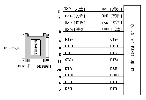 RS232/RS422轉(zhuǎn)換器,無需供電,除傳送TXD、RXD外,還傳送RTS、CTS和DTR、DSR信號(hào),最高速率57.6Kbps。