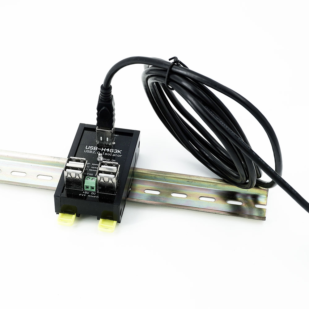 USB2.0高速隔離器,隔離電壓3000VDC(可定制最高8000VDC隔離電壓),具有4個(gè)隔離的USB-A端口輸出,支持高速(480Mbps)、全速(12Mbps)、低速(1.5Mbps)。純硬件解決方案,對USB協(xié)議完全實(shí)時(shí)和透明,不需要額外安裝任何驅(qū)動程序,工業(yè)級標(biāo)準(zhǔn)設(shè)計(jì),DIN35標(biāo)準(zhǔn)導(dǎo)軌安裝。