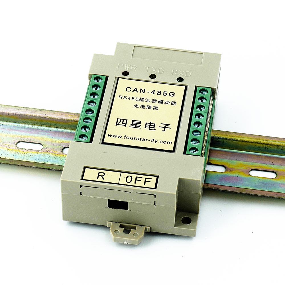 RS485/RS422通用光隔離超遠(yuǎn)程驅(qū)動(dòng)器,采用不改變RS485協(xié)議(軟件)的CAN驅(qū)動(dòng)器,只需二根線即可將RS485/RS422通訊距離延長(zhǎng)10km(4800bps時(shí))、5km(9600bps時(shí)),支持110個(gè)RS485節(jié)點(diǎn)組網(wǎng),解決了野外使用中繼器加電源的麻煩,外接5V電源。外形為導(dǎo)軌安裝的工業(yè)結(jié)構(gòu),帶指示燈。