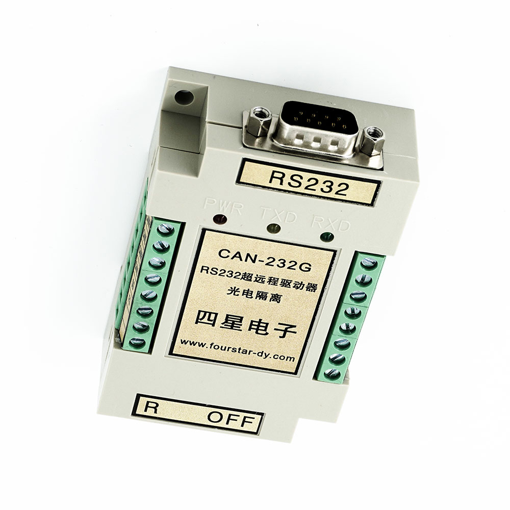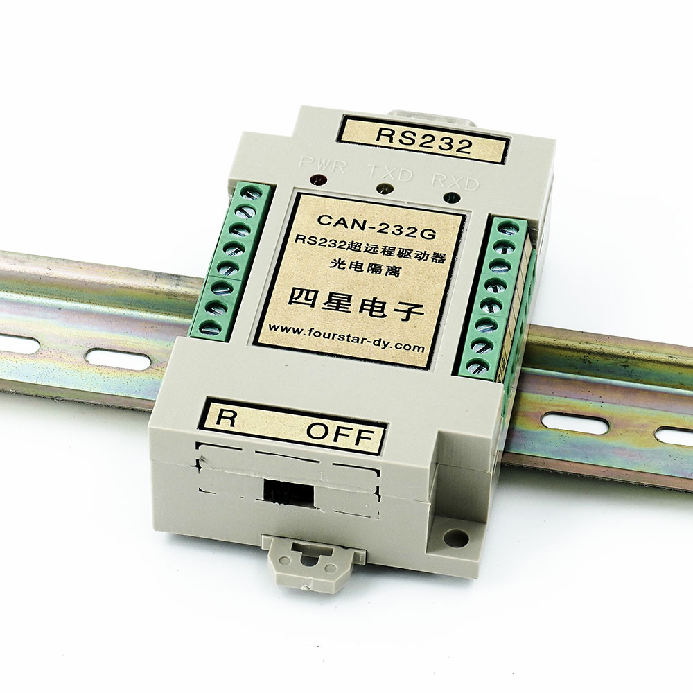 RS232光隔離超遠程驅(qū)動器,采用不改變RS232協(xié)議(軟件)的CAN總線驅(qū)動器,只需二根線即可將RS232通訊距離延長到10km(4800bps時)、5km(9600bps時),支持110個RS232節(jié)點組網(wǎng),解決了野外使用中繼器加電源的麻煩。外接5V電源。外形為導軌安裝的工業(yè)結(jié)構(gòu),帶有指示燈。