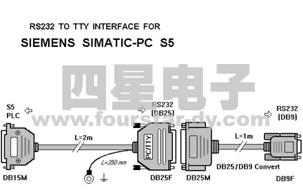 RS232到西門子S5系列PLC編程口(DB15)通訊接口電纜,3米。對(duì)應(yīng)西門子產(chǎn)品號(hào):6ES5 734-1BD20,RS232/電流環(huán)接口。
