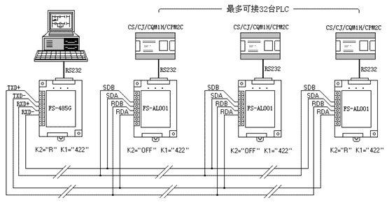 歐姆龍PLC用RS232到RS485/422轉(zhuǎn)換模塊,替代歐姆龍NT-AL001轉(zhuǎn)換模塊,將歐姆龍PLC或觸摸屏的RS232口轉(zhuǎn)換成RS485或RS422口,無需外接電源,光電隔離,防雷擊浪涌,波特率0~115.2Kbps自動適應,最大通信距離2公里(9.6Kbps時),支持多點通信,標準導軌安裝。
